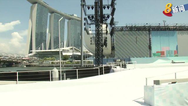 舞台与大道具设计师郭仲奕说:“这屏幕关着的时候可以当作投影表面,开着的时候可让观众欣赏滨海湾的景色和水上的表演。我们的设计概念是一个与滨海湾融合一体的舞台。”