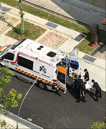 德士司机被带上救护车接受治疗。 (图/stomp)