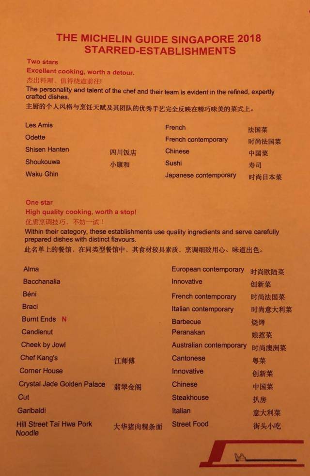 《2018年新加坡米其林指南》在7月25日晚上刚刚公布,
