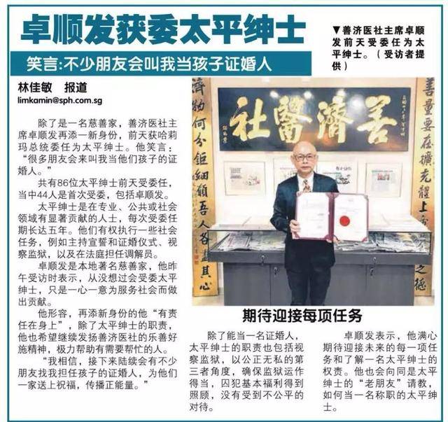 卓顺发先生作出的一切,也到了社会及广大民众的认可。