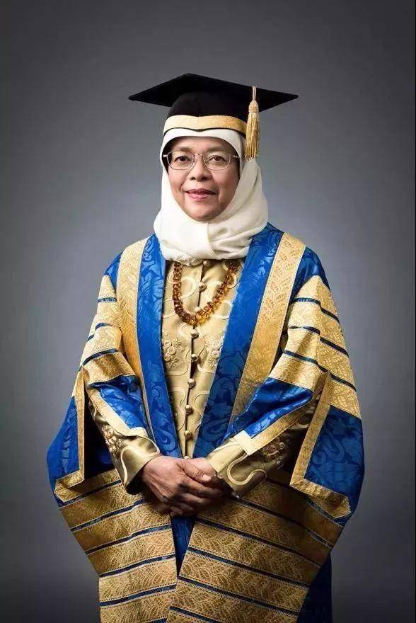 (新加坡现任总统哈莉玛穿着工整的学士服~)