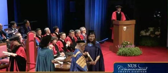 在今年的新加坡国立大学法学院的毕业典礼,为毕业生们颁发毕业证的就是新加坡现任总统哈莉玛~
