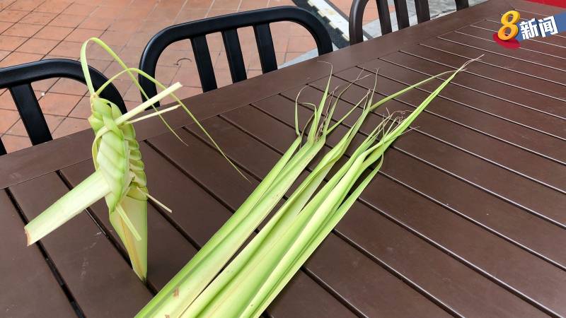 公众也能参与现场的手工工作坊,学习用班兰叶编织手工蚱蜢。