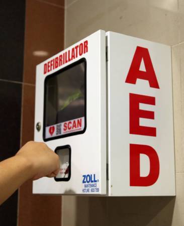 男子赤手砸破玻璃取钥匙,以拿自动心脏除颤器,并在过程中受伤。(示范照)
