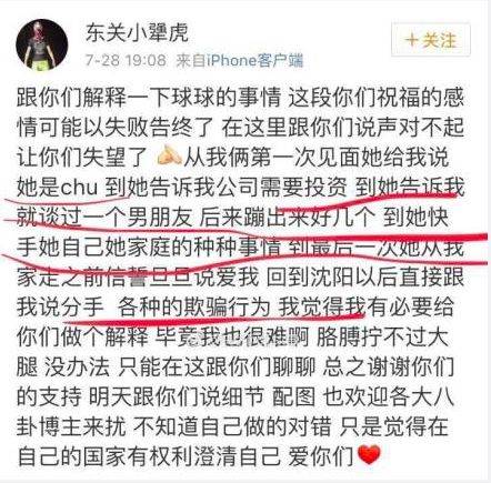 文中,男方爆料:球球多次欺骗自己,还diss她不是chu。目前已经删除这段文字,给大家饱饱眼福具体见图: