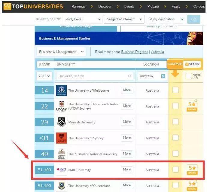 艺术与设计专业是RMIT最优秀的课程,2018 QS世界排名11位,澳洲第一;建筑与建造环境专业2018 QS世界排名25位;会计学、金融学、工程学、土木和结构工程四个专业名列全球前100强(会计学专业开通了CPA方向,拿到毕业证书即可获得CPA资格);计算机科学和信息系统、化学工程、电气和电子工程、地理研究、环境科学、医药、天文学、心理学、机械工程,航天工程和制造等专业名列全球前150强。