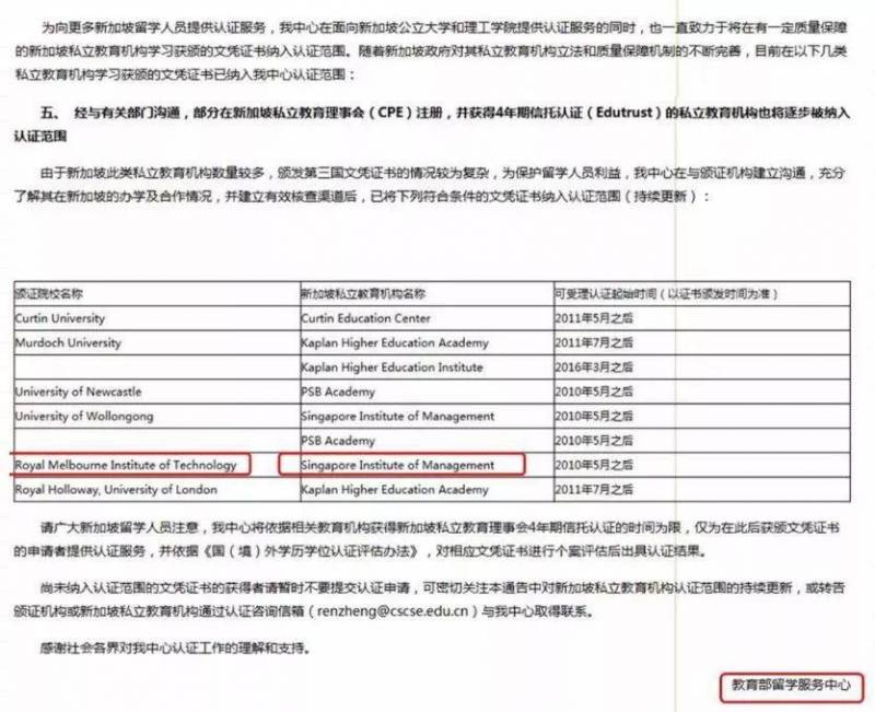短短时间里,新加坡SIM又一个课程受认可:SIM颁发的墨尔本皇家理工大学文凭获得教!育!部!批!准!毕业生可以在中国教育部做学历认证!