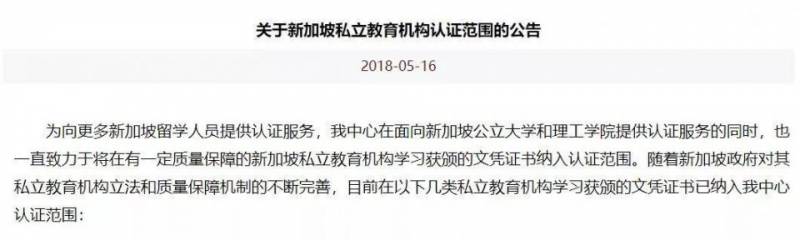 但是今年中国留学生网发布了《关于新加坡私立教育机构认证范围的公告》增加了中国私立院校的认证。