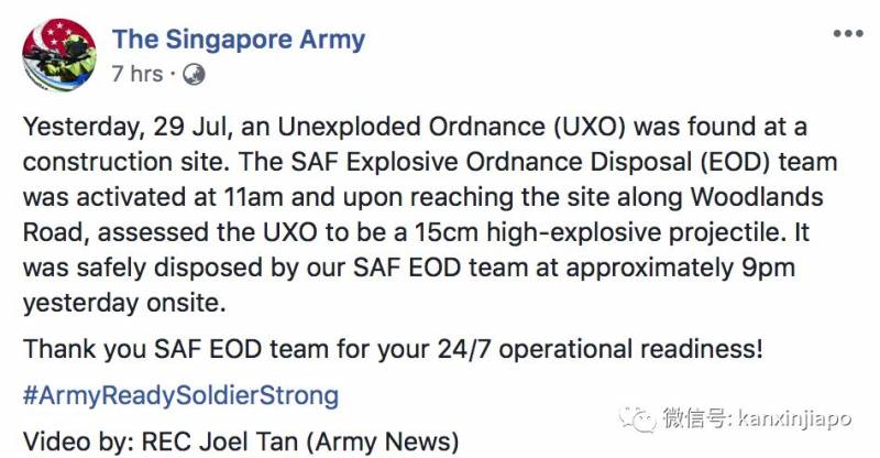 (7月29日),在新加坡兀兰路的一处建筑工地,发现了一枚战争时期遗留下来的还未引爆的炸弹!