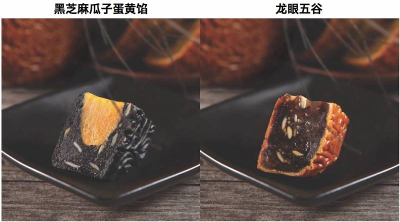 四大天王:蛋黄馅白莲蓉 、什锦果仁蛋黄馅白莲蓉、黑芝麻瓜子蛋黄馅、瓜子白莲蓉 。