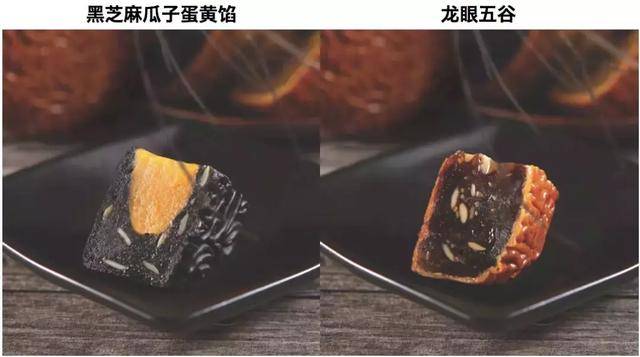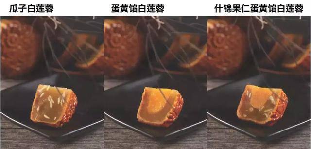 四大天王:蛋黄馅白莲蓉 、什锦果仁蛋黄馅白莲蓉、黑芝麻瓜子蛋黄馅、瓜子白莲蓉 。