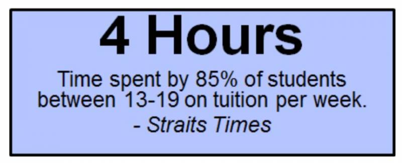新加坡介于13-19岁的孩子中,85%小孩每周要课外补习4小时以上。