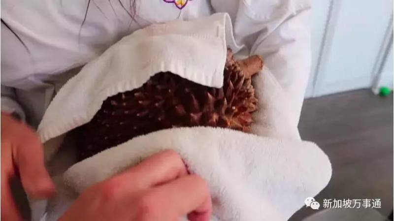 视频一开始,榴梿的出场方式就很是特别,他们怕被榴梿上的刺扎到,于是就用毛巾裹着,把榴梿像孩子一样抱了出来。