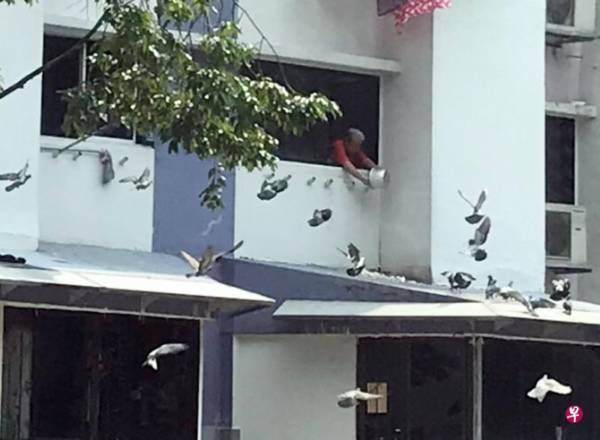《联合晚报》读者陈女士(50来岁)申诉,指今年初开始,住在裕廊西1道第540座组屋的一名大叔,每天早上8时左右便会从住家倒下米饭餵鸽,让居民感到困扰。