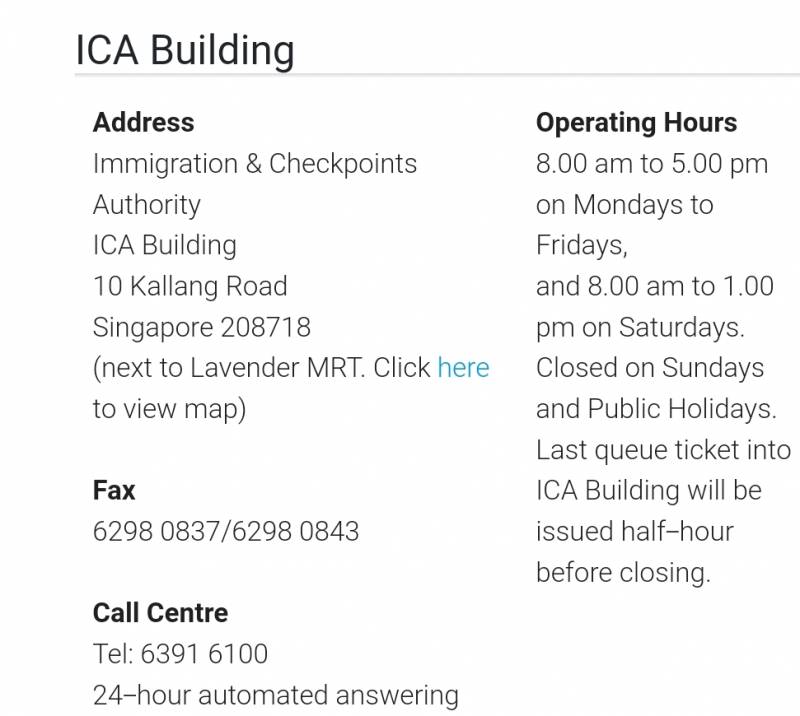 移民局大楼地址:10 Kallang Road, Level 4 (next to Lavender MRT station)