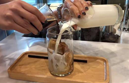 不常喝可可饮料的人,或许可以考虑先试试冰冻巧克力拿铁(Dulcey Toffee Frozen Chocolate Cubes Latte)。食客在太妃糖口味的巧克力冰块上,按照个人咖啡喜好倒入浓缩咖啡和鲜奶,稍微搅拌后,就是一道味道浓郁的太妃巧克力拿铁咖啡!