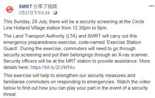 陆路交通管理局和环线地铁业者SMRT昨午12时30分至傍晚6时在荷兰村地铁站举行紧急应对演习。根据以往数据,星期天下午这个时段约有2500人次使用该地铁站。