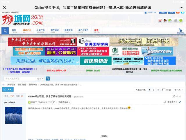 文章来源:Obike押金不退,我拿了辆车回家有无问题?
