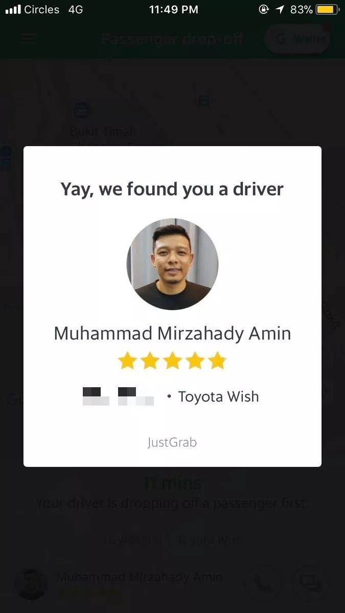 今年年初,网友还曝出哈迪成为一名Grab私召车司机,在推特发布了一张手机截图,显示了哈迪驾驶的Toyota Wish和大头照。