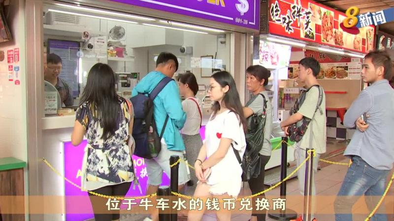 新元兑人民币的汇率日益走高,位于牛车水的钱币兑换商,中午时分就出现长长人龙。