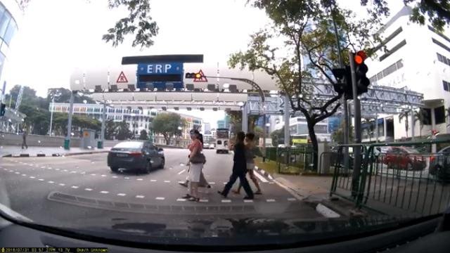 网民向Beh Chia Lor的Facebook页面提供的行车记录器画面显示,一辆深蓝色丰田汽车在红灯亮起时,非但没有停下,还快速驶过,导致五名正在过马路的行人险些被撞。所幸当时行人距离车辆还有一点距离,才避免惨祸发生。