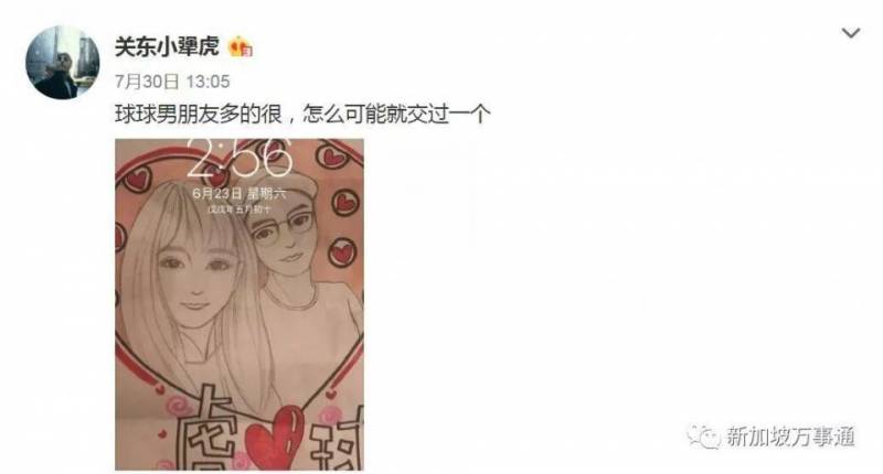 然而,从两人分手后的第三天(7月30日),这个小号就连续爆料了好几条关于球球的私事。第一条内容就是重申7月28日爆料关于球球交往过好几个男朋友的事,还又一次配上了合影卡通照:球球男朋友多的很,怎么可能就交过一个。