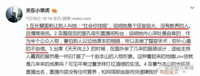 他还声称,靠整容吸引粉丝的球球,其内心深处是自卑又狂妄自大的人。