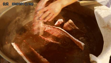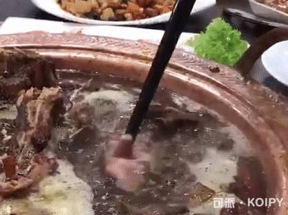 吃得时候让羊蝎子在锅中吸饱汤汁