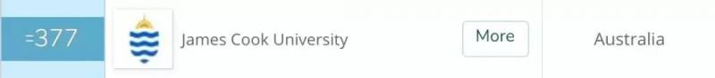 在最新发布的QS 2020年世界大学排名中,澳洲詹姆斯库克大学排名全球377位,澳洲前20。