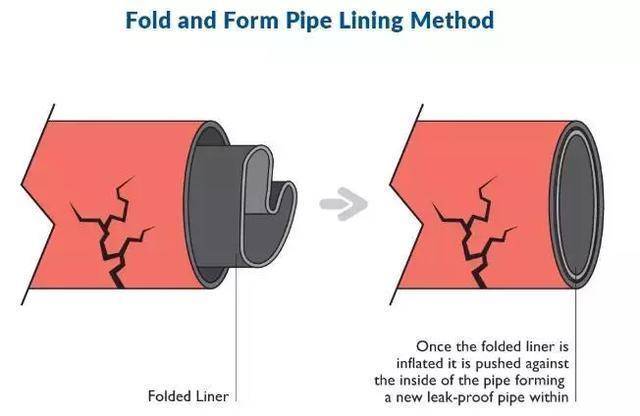 将“折叠”形状的连续预制PVC管线圈拉过现有管道,并使用蒸汽将其扩展回其原始的圆形形状。冷却后,在现有管道内形成紧密的衬里。