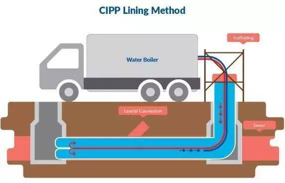 该种方法使用反转过程(热水或蒸汽固化)将浸渍热固性树脂的柔性衬里插入清洁管道。
