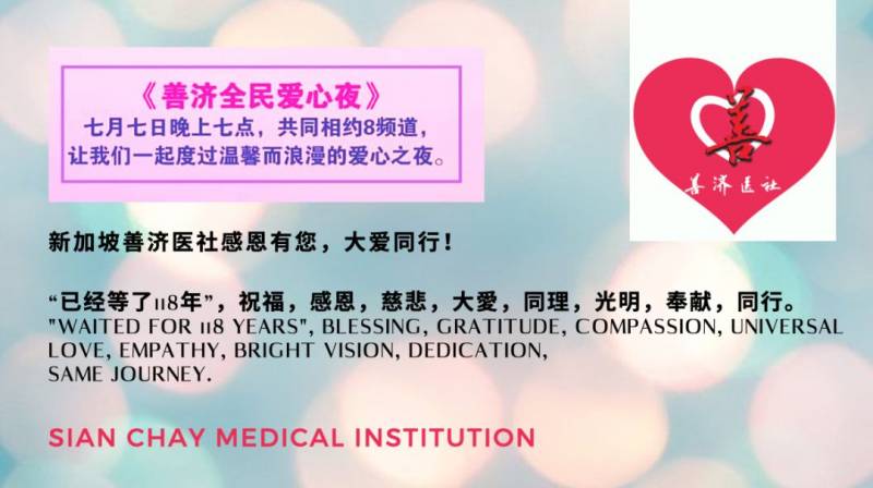 有国才有家,家和才万事兴,只有善与国同在,济与民同心社会才会越来越美好,这不仅是善济医社的担当,这同时也是每一个新加坡人不可推卸的责任与义务!这需要你我共同努力!
