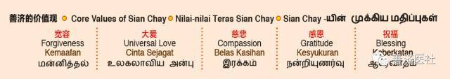 善济医社卓顺发主席大力弘扬善济五大文化价值观:宽容、大爱、慈悲、感恩和祝福。他说,取之社会,用之社会。照顾社会弱势群体,有钱出钱有力出力,大家尽心尽力,为慈善献一份力。