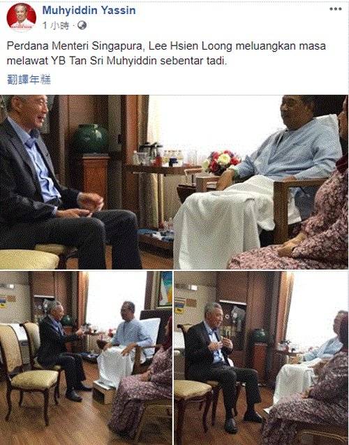 慕尤丁在其面子书分享了这件事,并上载数张李显龙探访时,两人愉快交谈的照片。
