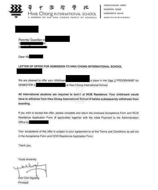 学生目前就读公立学校,数学基础比较好,环球筛选的5所学校当中,优先申请HCIS这所学校,由于HCIS要求必须要参加校内组织的数学和英文笔试,所以环球安排独家的新加坡老师对孩子进行3个月的一对一辅导,最终在学校的考试中脱颖而出,顺利录取。