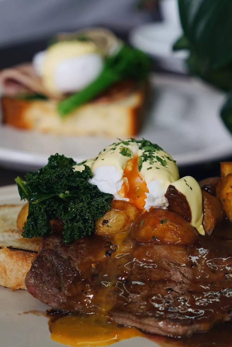 170g scotch steak, finger potato, kale, free range poached egg, sourdough toast, hollandaise(S$24)