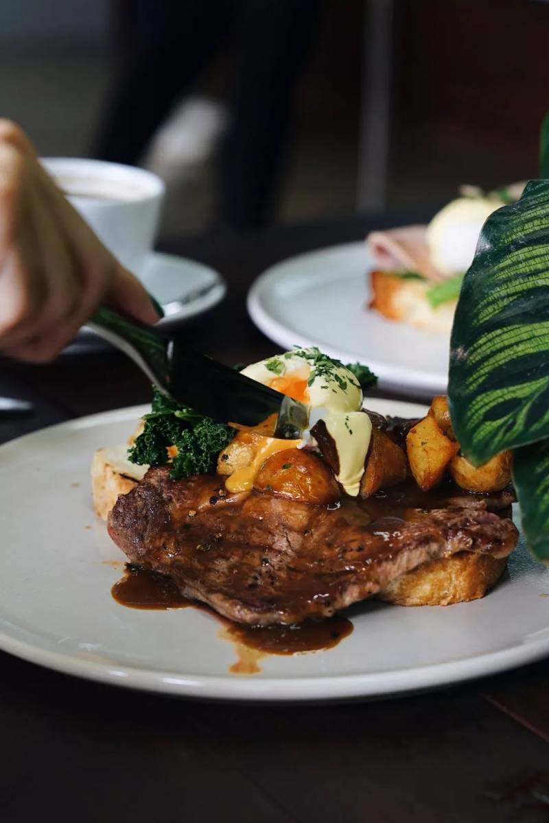 广告早餐吃牛排,幸福感别提多高了。柔嫩多汁的澳洲肋眼,软糯入味的烤小土豆,都是刚刚好很完美的口感。搭配羽衣甘蓝 sourdough和水波蛋。