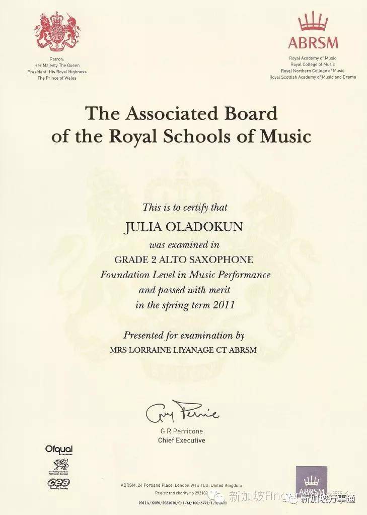 ABRSM证书被美国、澳大利亚、加拿大、新西兰、法国、德国、意大利、日本、新加坡等 90 多个国家所认可,是音乐圈里的“国际通用货币”。 此外ABRSM证书具有申请欧美院校加分的优势,这其中就包括世界著名学府——牛津、剑桥等国际一流名校,尤其在英属国家,高等学校(非音乐专业)入学时,拥有英皇音乐考级八级证书,最高能加至105分,自6级起获得的证书就可以作为欧美多所院校申请入学的加分项。在新加坡,获得ABRSM证书的孩子在升学中也会有一定优势。
