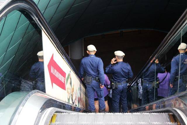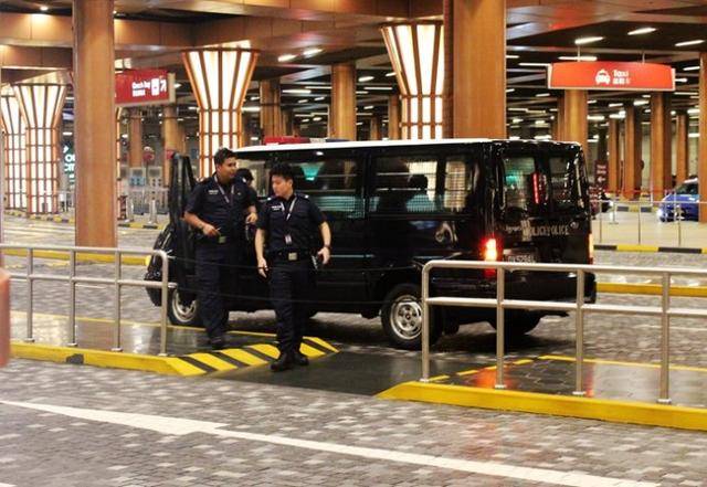这是警察出现在圣淘沙岛的商业娱乐中心巡逻