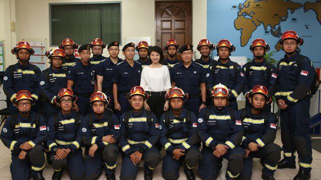 广告民防部队派出的灾难拯救队共有九名民防灾难拯救队员(Disaster Assistance and Rescue Team)、四名火灾拯救专家、两名操作人员、一名护理人员和一名技术支持人员。