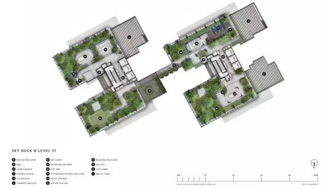 三栋塔楼通过屋顶花园衔接为一个整体,更将屋顶打造为一个社区中心!