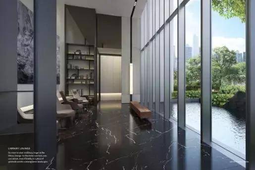 豪宅的入户大堂,以及内部的阅读区,都有木格栅元素的出现,与水景的结合也相当优雅。