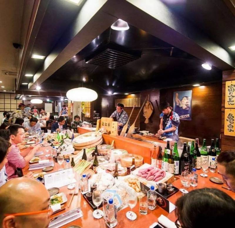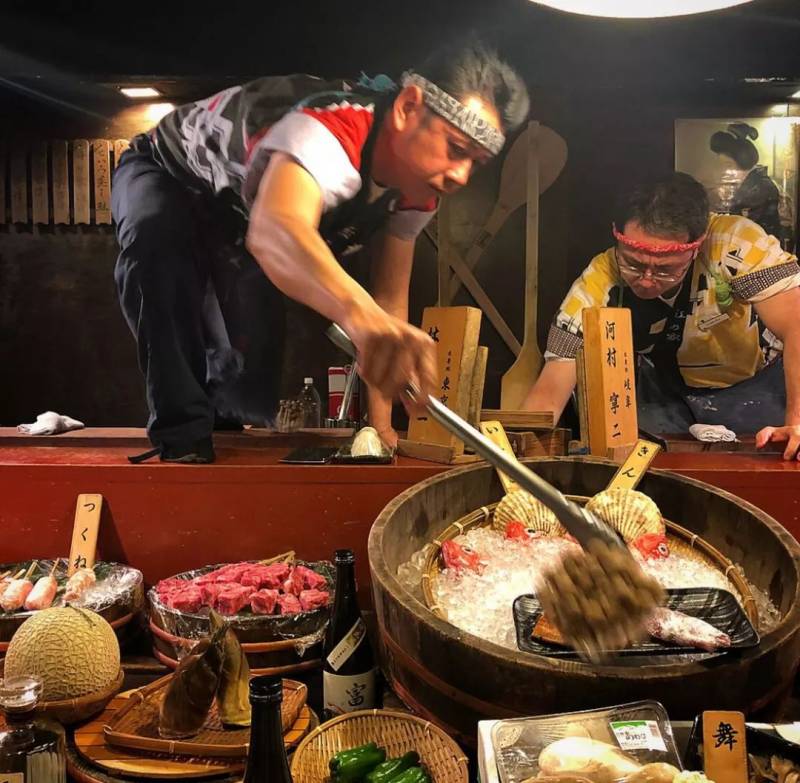要说感觉谁更像深夜食堂,其实应该要算红乃家炉端烧。钟情日本烧烤的你,想必一定知道他们家就跟一个日本当地“鱼市场”一样,非常特别。进去以后找个位子坐下,面前就摆满新鲜各类海鲜和食材,你喜欢哪款食物,料理师就挑哪个,有时候还会跳上甲板上为你挑选,市场画面感极佳~