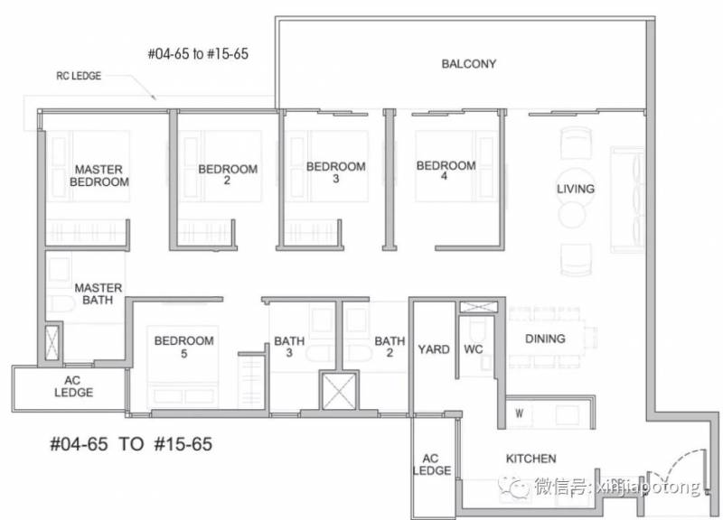 五房户型图,126平方米/1356平方英尺,封闭式厨房,实用型设计.只剩最后一套,价格191.7万新币