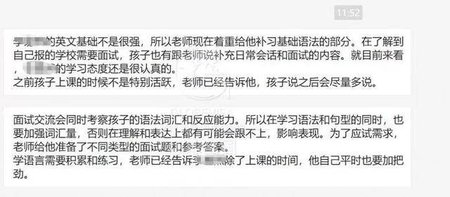 但是,环球的人基本上每周3-4次联系我,给我汇报孩子上课的情况。新加坡的老师也会反馈我儿子上课态度,已经进步。