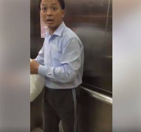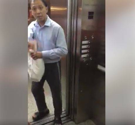 这时,第三名乘客进入了电梯,而华裔男子便自行离开。在完全离开之前,他还再次飙脏话。
