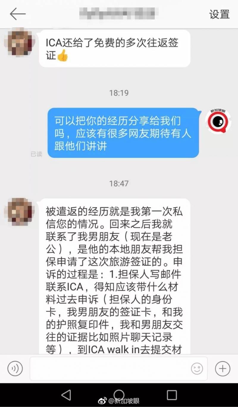 新加坡眼收到网友反映,她在新加坡入境时被遣返了,工作人员告知他遣返以后必须申诉,否则以后就很难入境新加坡。新加坡眼原函照登,提醒大家有类似的情况一定要申诉。
