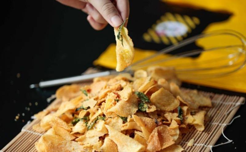 Irvins咸蛋黄薯片相当薄,使用了奶油、咸蛋、辣椒还有咖喱叶等食材。