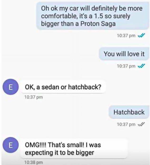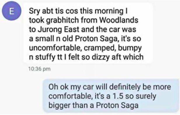 当Ryde司机司机告诉乘客车子的类型之后,乘客马上就说:OMG!!这太小了!!!
