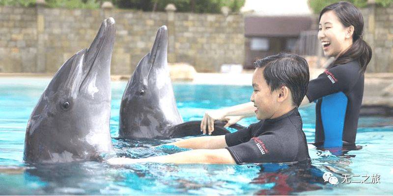 温顺的海豚推著小小的人儿在水面漂浮,内心悸动又惊喜十足。或者和海豚来个亲密接触,给它一个大大的拥抱,摸摸它滑溜溜的皮肤。